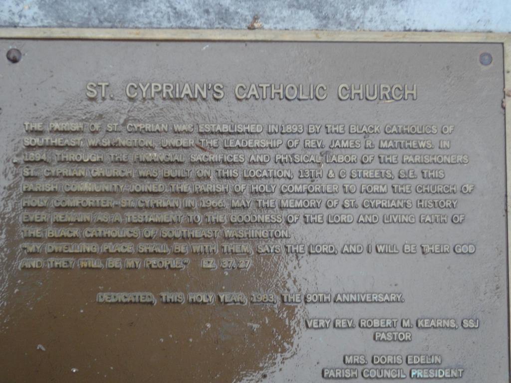 “May the memory of St. Cyprian’s history ever remain as a testament to the goodness of the Lord and the living faith of the Black Catholics of Southeast Washington. ‘My dwelling places shall be with them, says the Lord, and I will be their God and they will be my people.’ Ez 37.27”