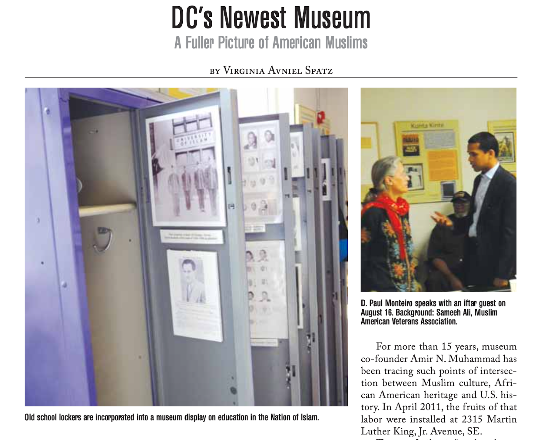 “DC’s Newest Museum: A Fuller Picture of American Muslims” by Virginia Avniel Spatz. September 2011 Hill Rag AND East of the River